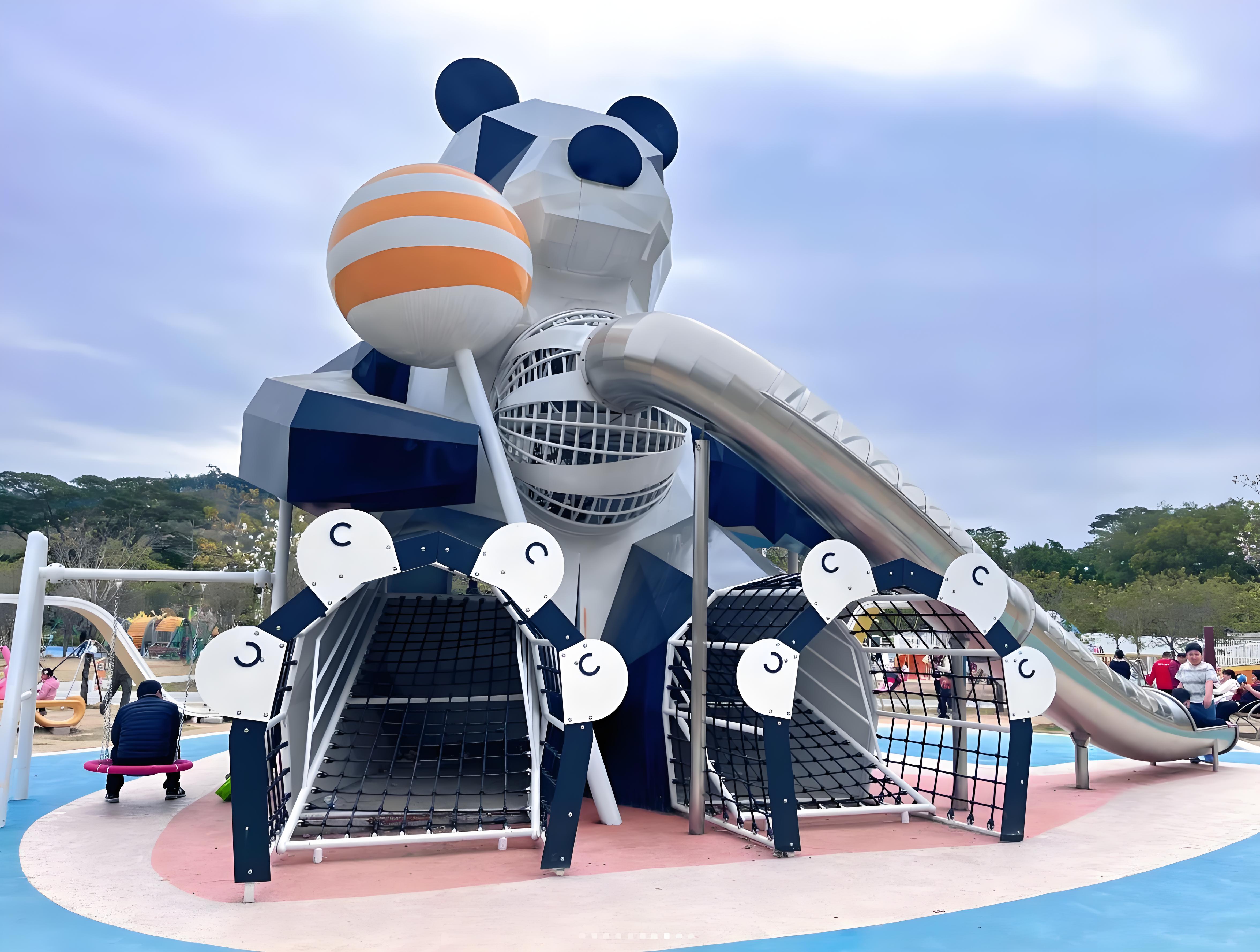 熊猫滑梯:结合斜坡与绳网,适合团队协作游戏;